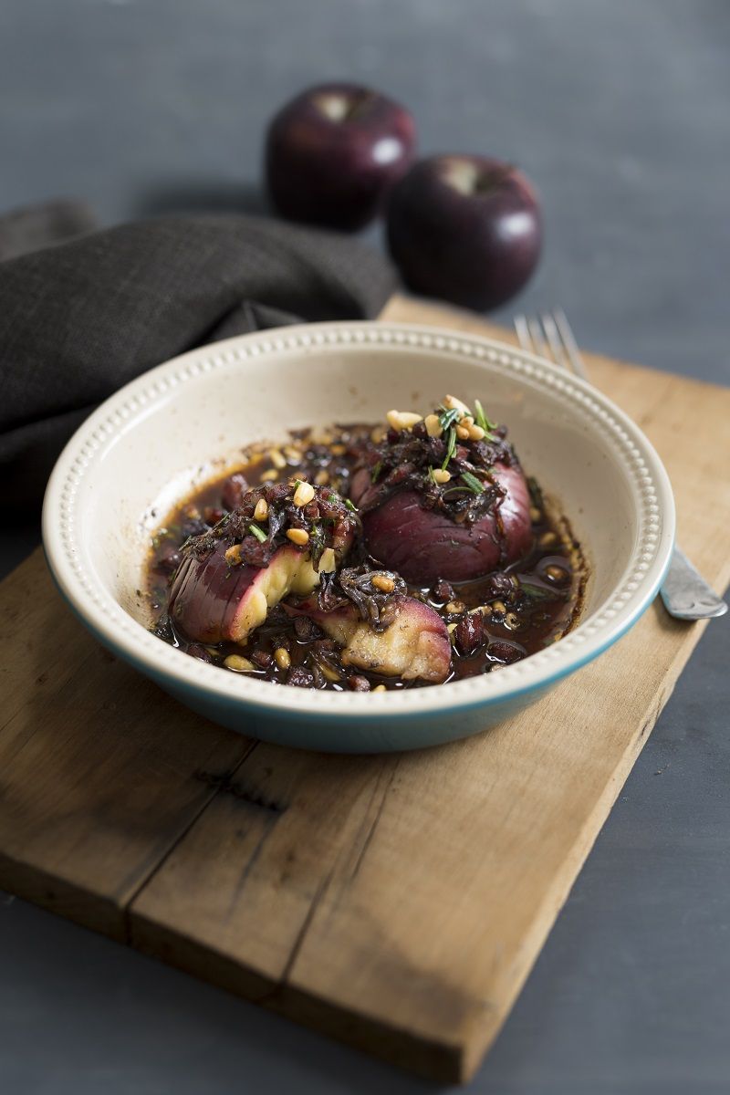 Hasselback Bravo™ apples, Chorizo, Red Wine, Onion & Toasted Pine Nuts